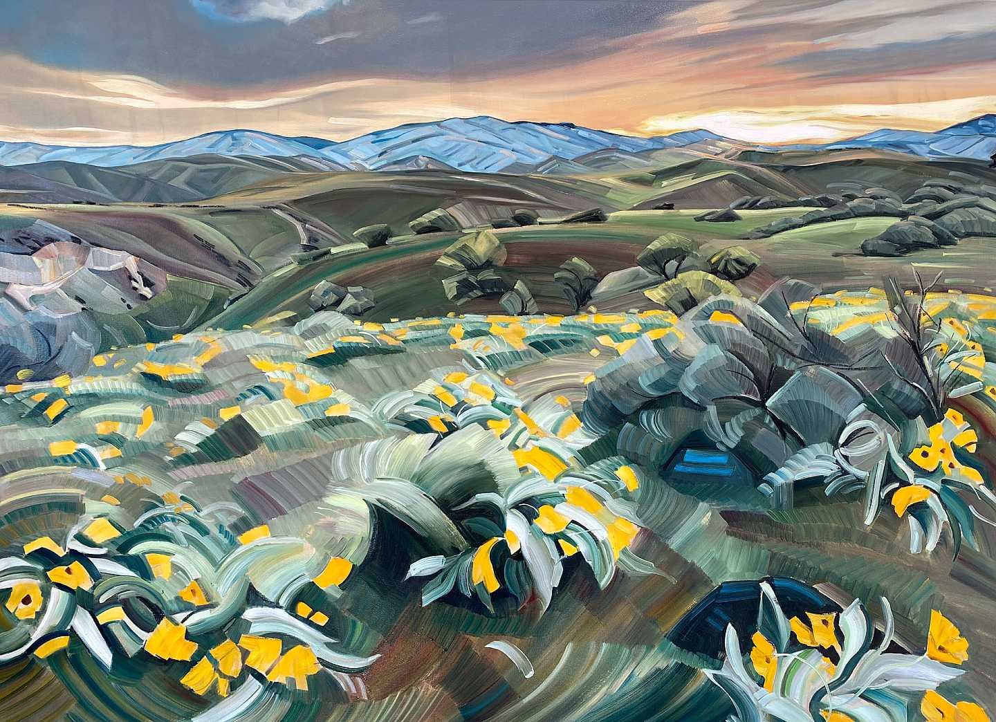 Rachel Teannalach is a contemporary landscape painter whose work is characterized by bold, gestural brushstrokes and her ability to evoke the emotional quality of the places she paints. She is known for her "tinyExpanse" daily paintings as well as large scale landscapes. Teannalach believes in art's ability to connect people and causes they believe in. For over a decade, Teannalach has collaborated with local and regional conservation organizations, supporting their efforts to preserve the lands she loves to paint. She has worked with Conservation Voters of Idaho, Idaho Conservation League, Advocates for the West, Idaho Rivers United, Winter Wildlands Alliance, the Sawtooth Society, and more. She also uses her work to promote other types of non-profits including the Agency for New Americans, Idaho Youth Ranch, and Surel's Place. Teannalach works in an "ala prima" style, which means "at the first attempt". Her fresh, expressive style places the viewer right in the experience of a specific time and place. Teannalach's work is guided by the belief that the observation of nature revives our recognition of beauty and restores our sense of belonging in the natural world.